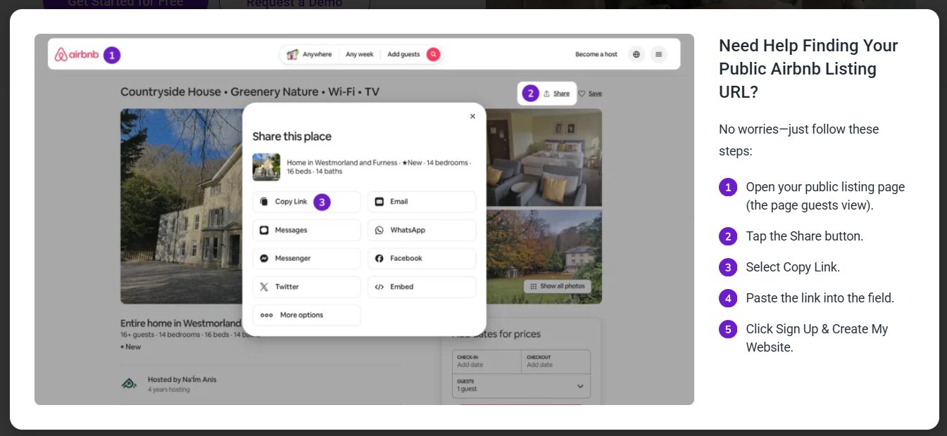 This should be your public Airbnb listing URL — the one guests use to view your listing.